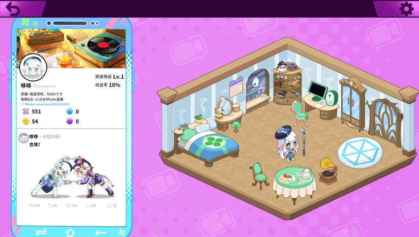 本作的核心玩法融合了单人卡牌构筑Roguelite、生活模拟与直播互动三大元素。玩家可以选择扮演魔魔或哆哆,一边进行直播提升人气,一边使用卡牌闯关解谜。战斗方面,玩家通过不同牌型召唤“魔晶”(武器)进行战斗,并可以解锁人物炫酷技能。游戏还包含“魔灵系统”强化卡组效果,以及“古玩”系统改变卡牌属性。下播后,玩家可通过商店购买道具强化直播效果,自由安排日程,体验主播与魔法冒险的双重人生。