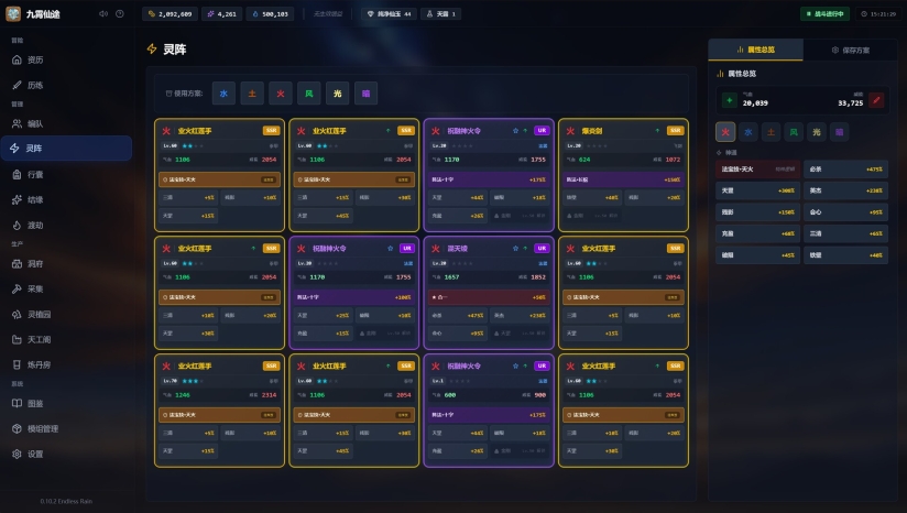 游戏核心融合了深度策略构筑与佛系挂机养成。战斗采用自动回合制,玩家可自由切换自动或手动模式,需掌握火、水、风、土、光暗等元素属性的相生相克法则。核心战力来源于“灵阵”系统,玩家需收集并强化上百种法宝,将其填入12个阵眼,根据敌人属性搭配出最佳法宝组合。此外,游戏包含洞府经营、灵植种植、炼丹锻造等生活技能,以及管事系统,让道友不仅能上阵杀敌,还能管理建筑提升效率。