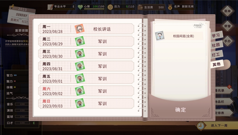 游戏采用模拟养成机制,玩家的选择将直接影响角色的成长路径和故事走向。玩家需要管理时间与资源,平衡学业、社交和恋爱生活。游戏提供四个专业大类选择,构建完全不同的人生轨迹。社团活动包括篮球队、话剧社、音乐社和学生会等,提供了技能提升和社交互动的场景。游戏还包含独特的掷骰玩法和10+小游戏,完美融入剧情演绎。