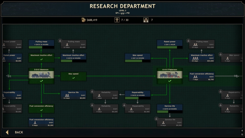 游戏的核心玩法围绕铁路公司的经营管理展开。玩家需要规划跨地区路线,建造铁路网络,平衡财务、科技与基建布局。通过控制信号灯管理交通流量,建造桥梁、隧道和平交道口来克服地形障碍。游戏包含深度的经济管理系统,玩家需要分析财务报表,通过金融部门进行贷款和债券操作,低买高卖操控全球商品价格。同时可以建立研究、地质、游说、财务等部门,招募拥有专属专长的办公职员来优化企业运营。