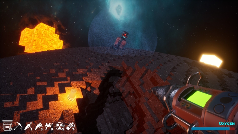 第一人称太空挖矿:玩家扮演一名普通工人,在祖父失踪并被宣告死亡后,继承了一艘破旧飞船和巨额债务,被迫前往矿区执行采矿任务。游戏以第一人称视角展开,核心操作是使用各种工具在小行星、废弃星球和空间站中钻探、挖掘稀有矿物与古代遗物。