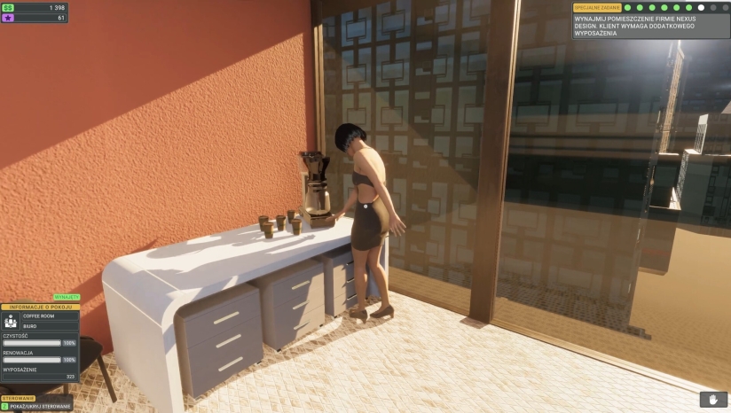 教育破坏孩童沉浸式模拟休闲《梦想办公室(The Dream Office)》是由BEPLAYER和Nesalis Games开发,FreeMind S.A.和Nesalis Games发行的一款模拟经营类游戏,支持简体中文。玩家将翻新并管理一栋破败的办公楼。玩家需清洁、维修并布置房间,把它们租给挑剔的租户,修理打印机和咖啡机,享受办公室里夸张的笑话文化,并在日常混乱中生存下来。《The Dream Office》为玩家提供了一个高度自由的办公楼经营管理沙盒,将细致的装修模拟与宏观的商业策略相结合,旨在让玩家体验从零开始构建办公帝国的全过程。