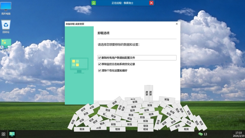 游戏最大的特色在于对现实流氓软件行为的尖锐讽刺和夸张化再现。它精准还原了用户现实中可能遇到的各类窘境。游戏将这些令人厌烦的行为转化为互动解谜,让玩家在虚拟世界中宣泄积怨,同时寓教于乐地提醒用户警惕现实中的卸载陷阱。游戏还设计了独特的“物理对抗”机制,例如某些弹窗会检测鼠标速度,移动太快窗口就会自动逃走;有的按钮会受到“重力”影响掉出屏幕。