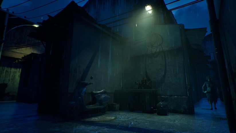 游戏采用第一人称3D视角,精心构建了阴森诡异的古宅场景。场景内红灯高挂、饭菜余温犹存,细节处透露出曾有人生活的痕迹与突如其来的悲剧。美术风格充分运用中式恐怖元素,如嫁衣、冥婚仪式、荒废宅院等,营造出独特的民俗恐怖氛围。游戏通过光影与音效配合,强化了探索时的紧张感与遭遇附身者时的惊悚体验。
