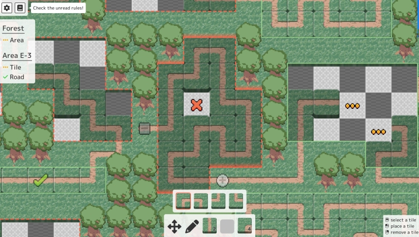 游戏的核心玩法是道路连接类逻辑解谜。玩家需要通过放置描绘道路、建筑等元素的瓷砖,连接道路并填满所有空白格子。瓷砖形状必须与周围瓷砖完美衔接,例如当格子左侧有道路时,需放置对应衔接形状的道路瓷砖。玩家初始仅拥有少量基础道路瓷砖,通过填满整片连续空白格子来解锁新瓷砖类型,解锁的瓷砖越多,可填充的空白形状也越丰富。