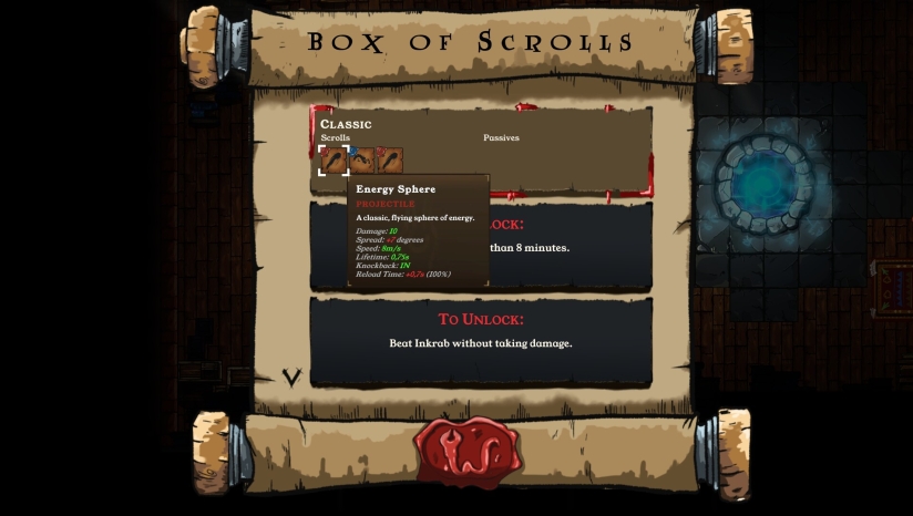 卷轴即武器:高度自由的构筑系统。游戏的核心机制在于“卷轴组合”——玩家在地牢中拾取不同功能的魔法卷轴(如火球、连锁闪电、冰锥等),并通过组合触发协同效应。例如,将“弹幕发射”与“分裂”卷轴结合,可形成覆盖全场的密集弹雨;搭配“充能”卷轴则能蓄力释放毁灭性单发攻击。每一次组合都可能诞生全新的战斗流派,极大激发玩家的创造力与策略思维。