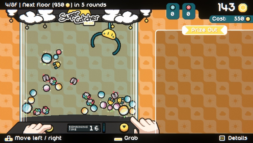 本作的核心玩法巧妙融合了即时操作的抓娃娃体验与Roguelike卡牌构筑元素。玩家需要在限定时间或次数内,操作娃娃机的爪子抓取奖品。游戏并非简单的模拟,而是引入了深度的策略系统。玩家从最便宜的楼层开始冒险,可以抓取超过70种独特奖品。每轮游戏结束后,玩家可以进行三选一的强化,通过添加或移除可用的奖品来构建自己的连击组合,并升级抓娃娃机以提高胜率。游戏过程中还会遇到隐藏的陷阱和越来越混乱棘手的机器,考验玩家的操作与决策。