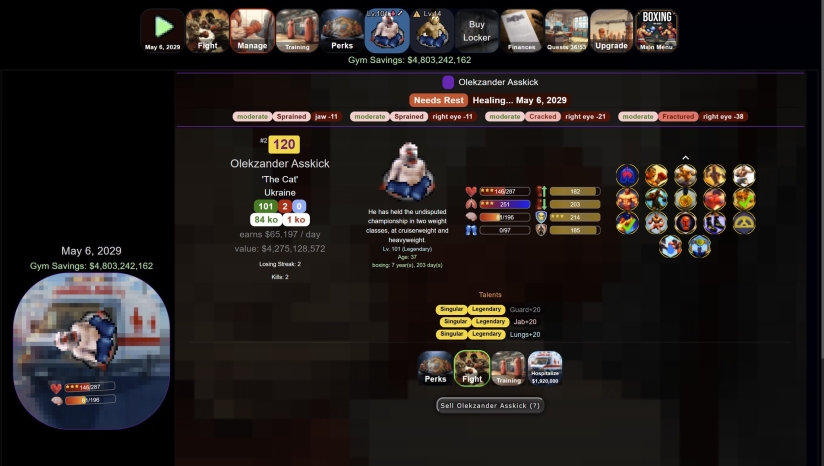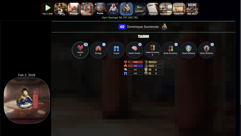 通过训练提升属性:投入资金提高拳手的基础属性。每项属性都会影响他们在拳台上的整体表现,并且都可以提升。有些属性带有星级,表示该拳手具有天赋。