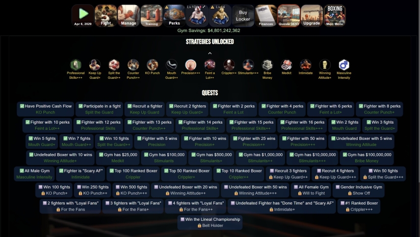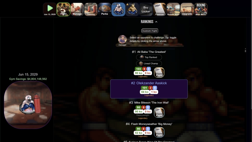 提升排名,赢得传承冠军腰带:凭借坚持、策略和一点运气,你将带领拳馆走向巅峰,并成为史上最伟大的拳击经理之一。加入 Discord,分享你的拳手并参与锦标赛。