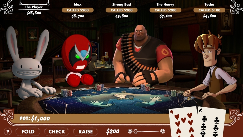 《扑克之夜》(Poker Night at the Inventory)是由Skunkape Games开发的德州扑克模拟游戏,玩家将以匿名视角参与一场无限制德州扑克对局,对手是来自不同经典游戏与动漫的知名角色,包括《Sam & Max》的麦克斯、《Team Fortress 2》的重装兵、《Penny Arcade》的泰寇以及《Homestar Runner》的斯特朗巴德,游戏场景设定在名为“仓库”的秘密俱乐部,由《猴岛传说》的温斯洛担任主持,对局中角色会进行趣味对话互动,规则遵循标准无限注德州扑克,初始每人持有10000美元筹码,目标是成为最后赢家,玩家获胜可解锁桌面、牌组等自定义内容,还能获取可用于《军团要塞2》的联动道具,玩法轻松休闲,兼具扑克策略性与角色互动的趣味性,凭借跨界角色联动与幽默风格成为小众经典。