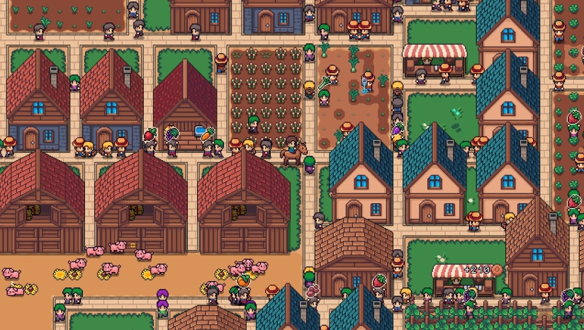 游戏玩法围绕农场经营和自动化展开。玩家需要收集资源,包括砍伐树木和开采岩石。在此基础上进行农作物种植,包括种植、浇水、收获和销售各种作物。动物养殖也是重要环节,玩家可以建造鸡舍和谷仓来饲养鸡、猪、羊和牛等动物。随着农场发展,玩家可以建造各种建筑物,如市场、房屋、仓库、鸡舍和谷仓。游戏最具特色的自动化系统允许玩家雇佣农夫、采集者和搬运工,实现种植、收获和运输货物的自动化。
